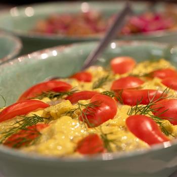 En frokostbuffet giver dine gæster mulighed for selv at vælge og sammensætte deres måltid, hvilket gør den velegnet til selskaber med forskellige smagspræferencer. Samtidig er det en løsning, der skaber ro for dig som vært.