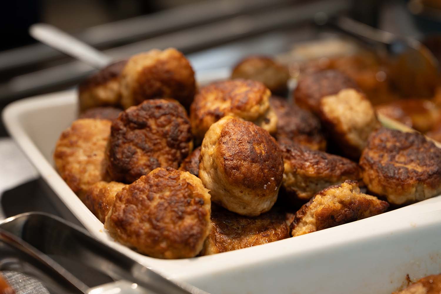 Vores frokostbuffet er sammensat med fokus på klassiske favoritter, god variation og mættende portioner. Det gør løsningen ideel til eksempelvis firmafrokoster, møder, receptioner, fødselsdage og familiesammenkomster, hvor maden skal være både velsmagende og nem at servere.