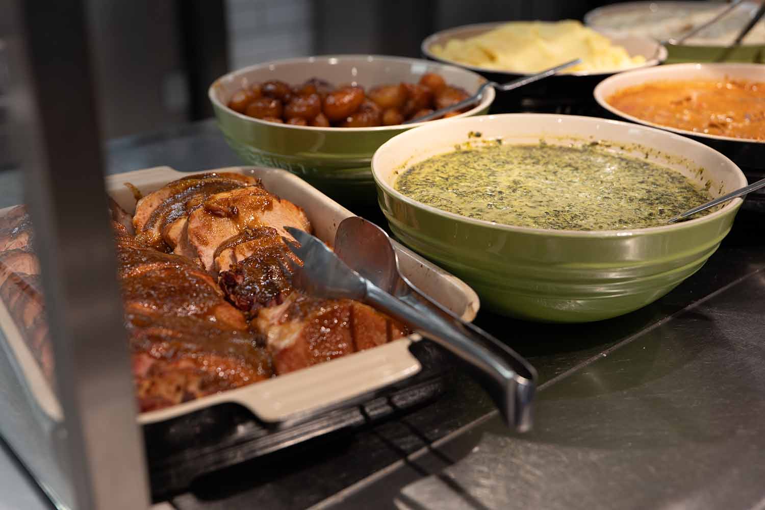 Du kan naturligvis også sagtens købe og spise frokostbuffeten hos os i Spisekrogen, hvor du kan sidde i hyggelige omgivelser og nyde din frokostbuffet.