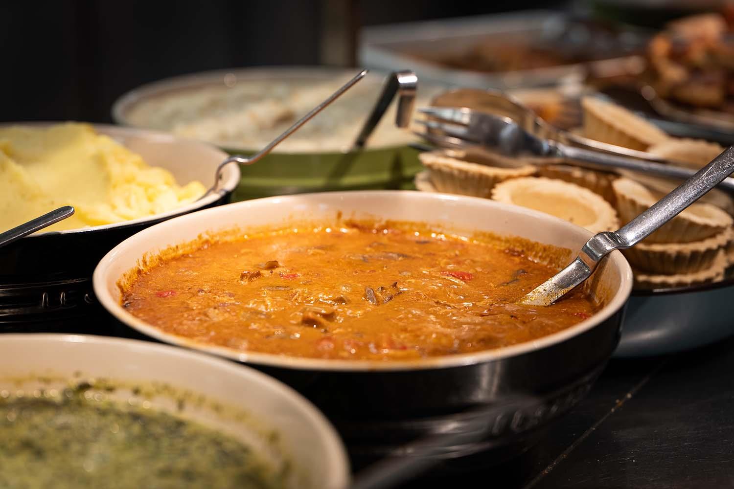Min 5 kuverter, dog salatbar minimum 10 kuverter. Vi anbefaler, at man vælger ca. 6 ting til en lille buffet, og ca. 10 til en stor.